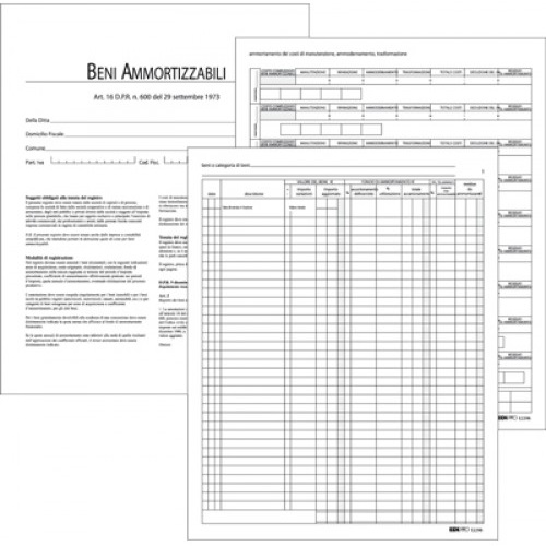 Registro cespiti ammortizzabili 45 pagine numerate. Formato 31 x 24,5 cm.