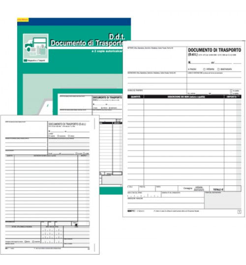 Blocco documento di trasporto 50 x 2 autoricalcante. Formato 29,7 x 21 cm.