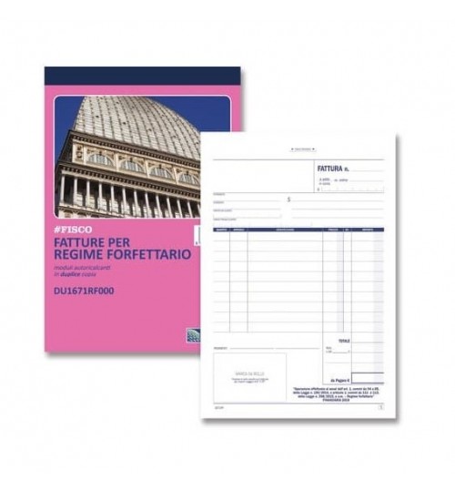 Blocco fattura Regime Forfetario 50 x 2 autoricalcante. Formato 21,5 x 14,8 cm.