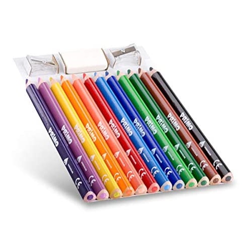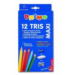 Pastelli triangolari PRIMO "Maxi Tris" - Astuccio 12 pz. + 2 temperini e 1 gomma
